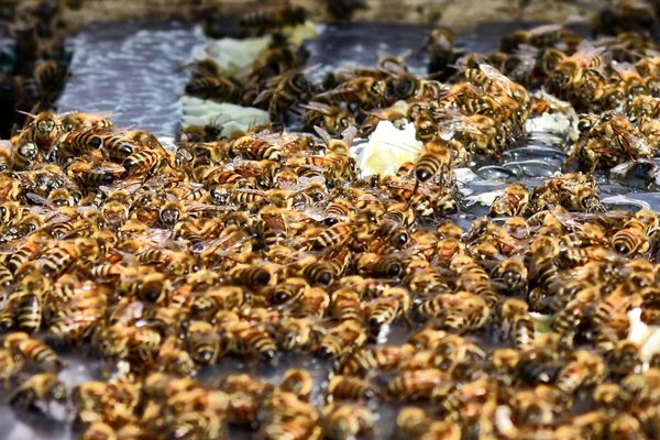 Looking down into the hive with full capped honey frames...Ready for extraction